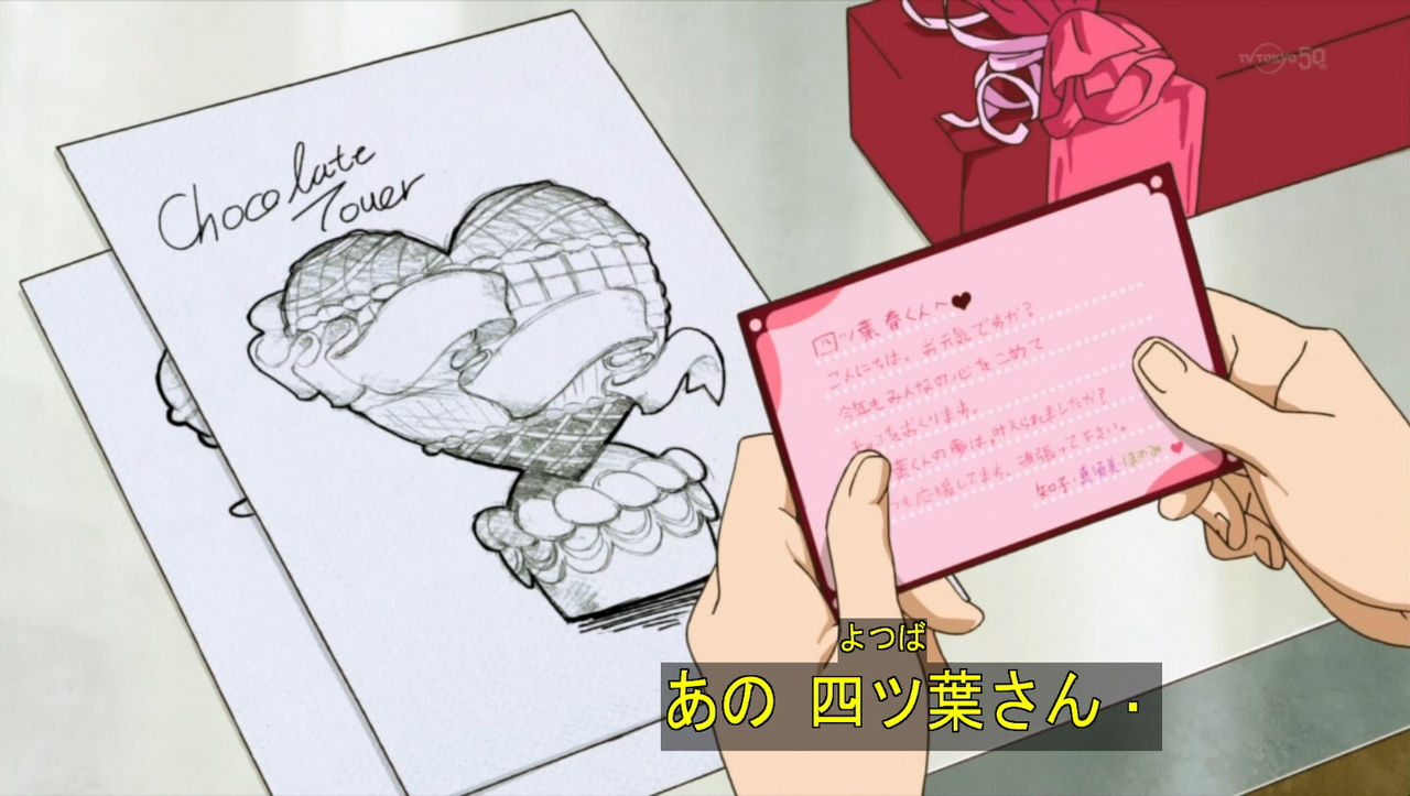 チョコレートに添えてあった手紙を読む四ツ葉さん